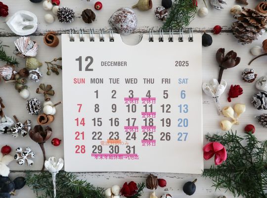 2025/12/28年末年始休暇の為、 12/29(月)より1/8(木)まで お休みをいただきます 御用の方は留守番電話もしくはお問い合わせにメッセージを入れてください 1/9(金... -
